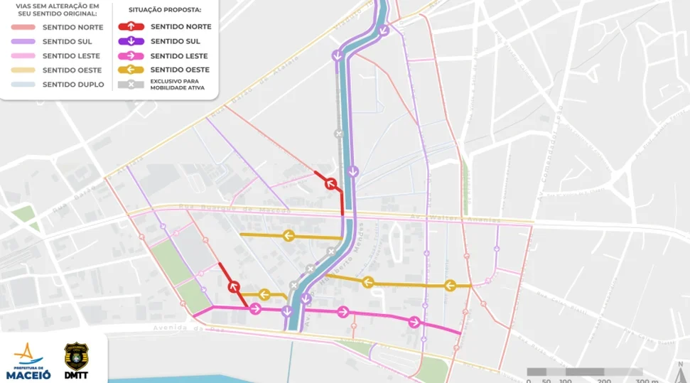 A principal alteração é na Avenida Deputado Humberto Mendes, que passa a operar em sentido único nos dois lados, com fluxo no sentido Farol/Praia.